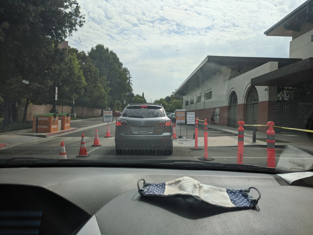 After more than a month of doing library visits this way, I am starting to get used to it. But I still don’t like it. The worst was the first time, when I got back into the van just as Chicago’s “Saturday in the Park” was starting to play, an unwelcome cameo from an old world now gone (Or gone for now? We just don’t know).